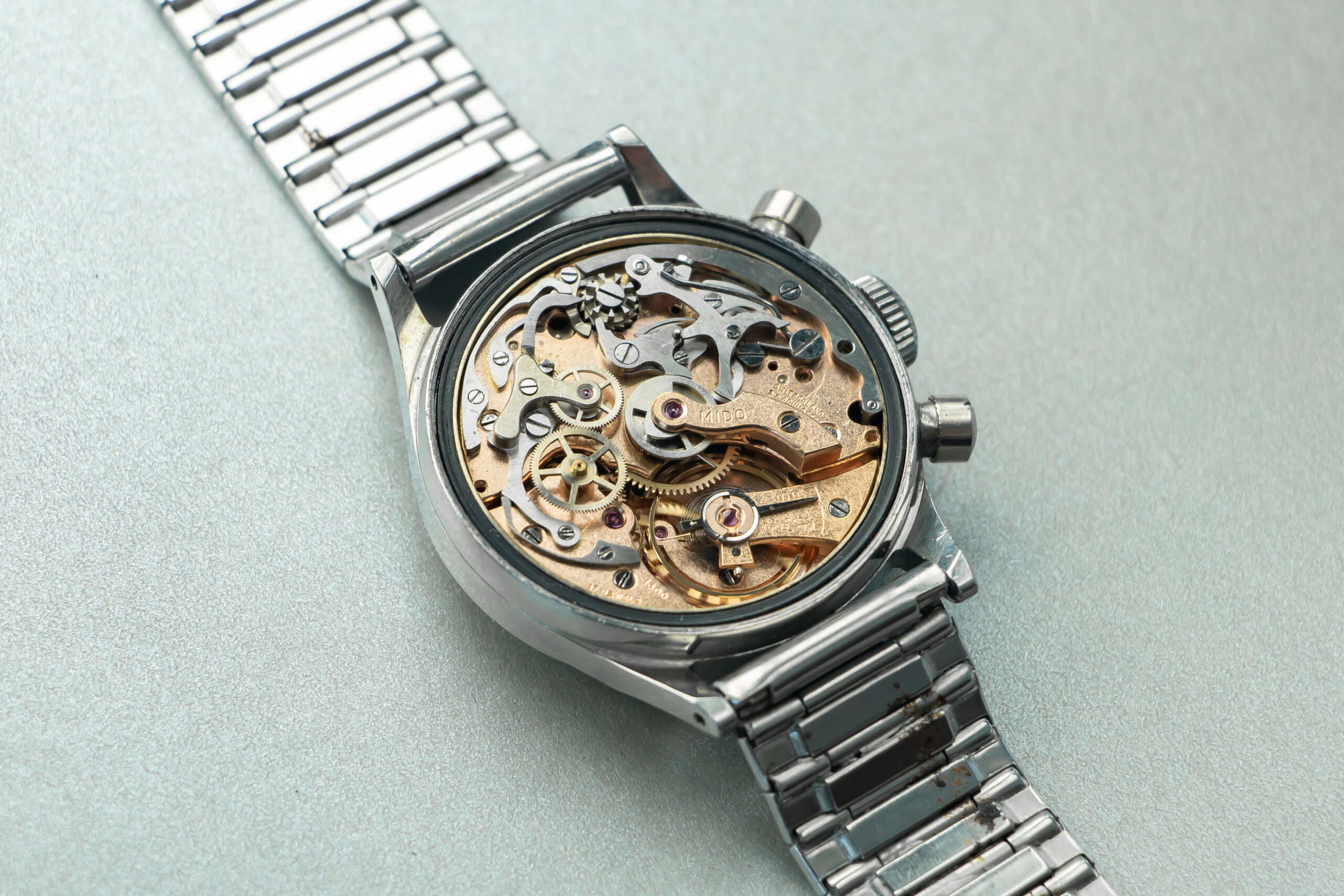 Delivered on a vintage Mido stainless steel bracelet.